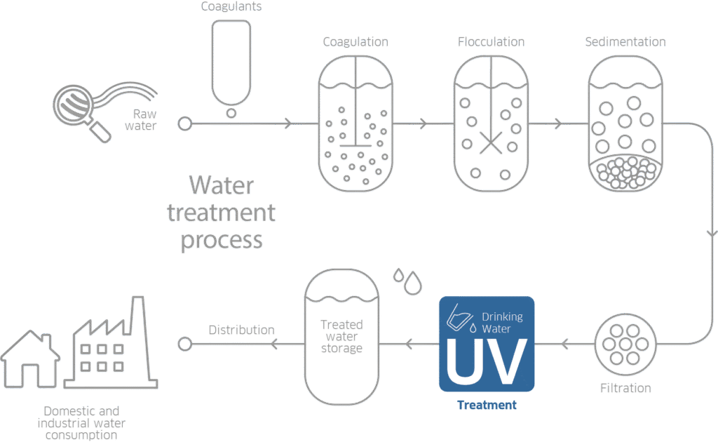 Woda pitna stanowi podstawowe źródło służące do zaopatrzenie budynków w wodę, w tym kompleksów komercyjnych w wodę pitną, a także innego typu obiektów takich jak hotele, czy centra SPA w wodę przeznaczoną dla kąpielisk. Ponieważ źródło zaopatrzenie w wodę lub jej magazynowanie w budynkach mogą być bardzo zanieczyszczone bakteriami i wirusami, takimi jak bakterie E-Coli, czy Legionella, kluczowym jest zastosowanie odpowiednio dobranego systemu dezynfekcji UV do konkretnej aplikacji.